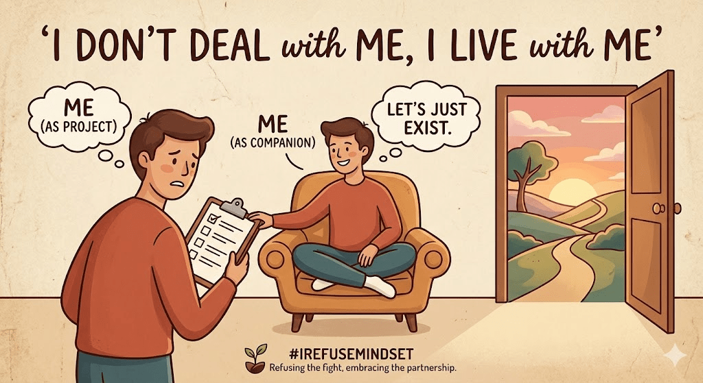 It is time to STOP “Dealing” with yourself and start LIVING. For a long time, I treated myself like a difficult employee. Yes me to me. I was constantly “managing” my moods, “handling” my setbacks, and “dealing” with my flaws. I lived in a state of internal negotiation, trying to bargain with my own energy just to get through the week. It was exhausting because “dealing” implies an adversary. It implies that I am the problem I need to solve. Then, I stopped. I adopted the #iRefuseMindset.
